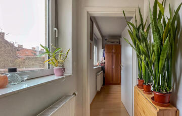 A tájolásnak és a számos nyílászárónak köszönhetően világos, udvari nézete és magas emeleti elhelyezkedése miatt pedig kifejezetten csendes. A helyiségek kompakt, praktikus elosztásúak, a 6 nm alapterületű erkély, a nappaliból nyílik.