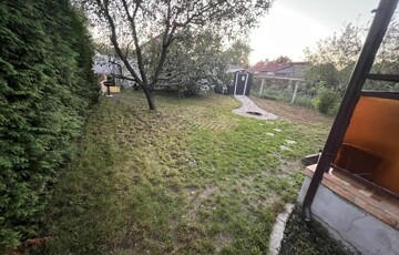 A 300 m2-es saját telken lévő, 25 m2-es, 1 szobás + 10 m2 fedett teraszos kis ház teljes berendezéssel, felszerelt konyhával, mosógéppel hosszútávra ( minimum 1 évre ) bárbeadó.