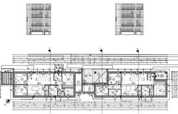 Helyiségei: nappali/étkező 27,00 m2, szoba 11,25 m2, szoba 9,12 m2, szoba 9,12 m2, konyha 5,25 m2, fürdő szoba 5,28 m2, közlekedő 3,52 m2, előtér 6,06 m2, kamra 2,34 m2, wc 1,50 m2, hth 5,20 m2, fedett belépő 5,48 m2 fedett terasz 11,79 m2, terasz 11,40 m2, tároló 5,55 m2.