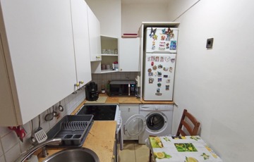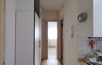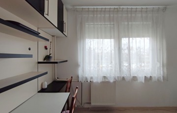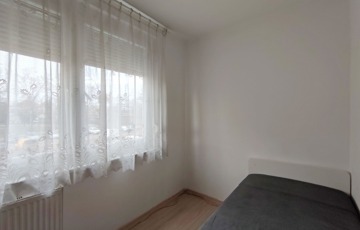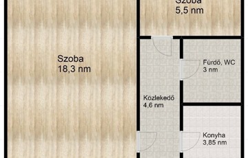 A lakásba korszerű, újszerű, több ponton záródó biztonsági bejárati ajtón keresztül jutunk be. Belépve balra a 18 nm-es, laminált parkettás, karbantartott nappalit találjuk, a bejárattól jobbra pedig a jó állapotú, járólapos, jól felszerelt konyhabútoros, 3 nm-es, járólapos konyhába juthatunk. A járólappal burkolt 3,66 nm-es közlekedőben a bejárattól jobbra a 3 nm-es járólapos, csempézett, közepes állapotú, WC-s, kádas fürdőszobába érkezünk. A fürdő után a közlekedő végében nyílik a 7,3 nm-es, laminált parkettás hálószoba.