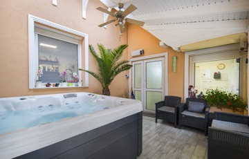 A telken garázs és fedett beálló található, az elektromos autók töltése biztosított. A gondozott kertben fűthető medence áll rendelkezésre, amelyet fúrt kútról lehet feltölteni.