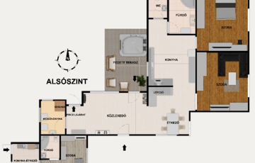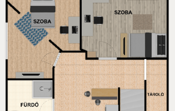 Az ingatlanban három különálló lakrész található. Az egyik egy földszinti garzon, amelyben 1 konyha-étkező, 1 fürdőszoba és 1 hálószoba kapott helyet. A másik egy kétszintes lakótér, ahol 4 szoba, 2 fürdőszoba és két konyha került kialakításra.