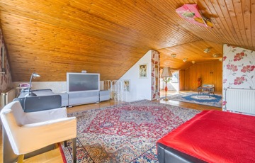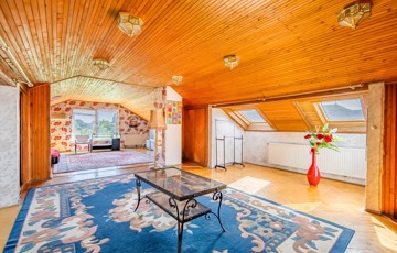 Az emeleten található, jelenleg egymásból nyíló (de ajtó nyitásával különválasztható) két nagy hálószoba 24-26 m2-es, a tetőtérben pedig egy szétválasztható, jelenleg egybenyitott, 40 m2-es szoba található.