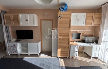 A helyiségek elosztása 1 egész és 2 félszoba, így kiválóan alkalmas akár kisebb családoknak is.