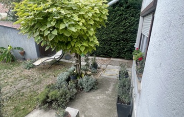 Az ingatlan 100 nm-es hasznos alapterületű tégla építésű. A telek 344 nm. A házban egy nagy méretű tágas, napfényes, körbenapozott nappali található mely parkettázott valamint 2 külön nyíló hálószoba. Tágas konyha étkezővel, ami közvetlen a teraszra nyílik.