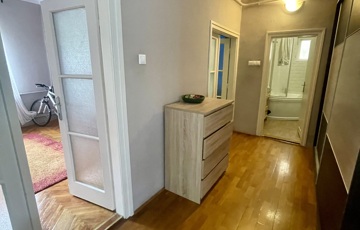 Kádas fürdőszoba wc-vel, nagy kamra, tároló és előszoba helyiségek találhatók.