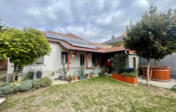 EXTRÁK az árban: Parkolás megoldott 2 autónak (beálló + garázs), napelem, fával fűthető dézsa, 2 személyes infra szauna.