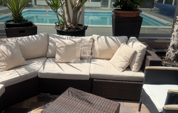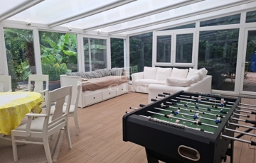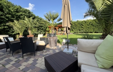 -Pergolás kiülő, étkezéshez vagy pihenéshez.