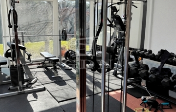 Tágas, 42 m²-es edzőterem, professzionális kondigépekkel.
