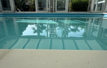 Fedett, gépesített, fűthető-hűthető 40 m²-es medence ellenáramoltatóval,