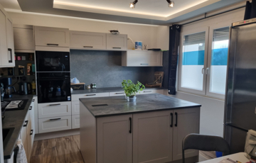 A nappaliból 20 nm-es teraszra tudunk kilépni. Az impozáns, vadonatúj beépített konyhabútor az új beépített háztartási gépekkel együtt a házban marad.
