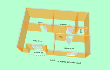 - a burkolatok: járólap, ill. a tetőtéri szobák laminált parkettával fedettek,
