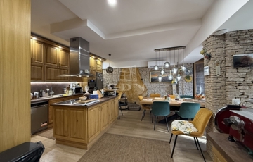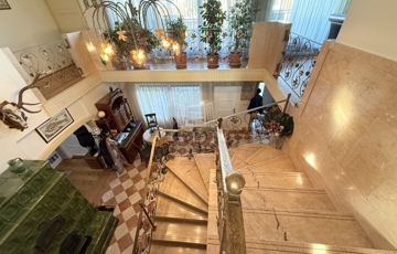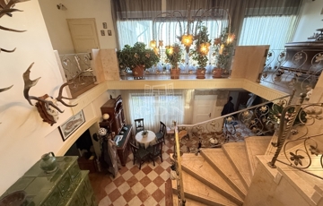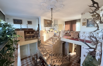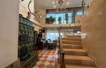 Három szint, 400m2: Pince, földszint és tetőtér-beépítésű „U” alakú lakóépület, Összesen 7 teljes értékű szobával, mindegyikhez fürdőszoba és gardrób tartozik, központi tágas konyha étkezővel, szalon, nappalival, télikert, tárgyaló, boltíves borospincével, teraszokkal.