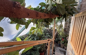 A mediterrán stílusú épületnek 2 bejárata van nagy terasszal. A felső teraszról pompás kilátással a kertre.