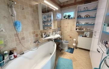 Az 1523 m2-es területen elhelyezkedő ingatlan 1995-ben épült, Porotherm téglából, 8-12cm kőburkolattal, illetve hőszigeteléssel. Fűtése gázkazán, padló és radiátoros hőleadással. Nagy teljesítményű klímarendszerrel. Másodlagos fűtésnek a nappali közepén egy impozáns méretű cserépkályha található. Vastag falaknak köszönhetően a rezsiköltsége alacsony. A burkolatok magas minőségű kő és márványburkolat, mely az egész házat egyedivé teszi.