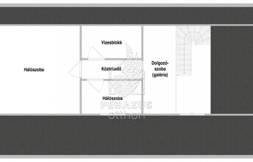 Az emeleti galéria jelenleg dolgozószobaként funkcionál, de tökéletes olvasósarok, vagy játszószoba lehet. Ezen kívül egy kisebb hálószoba, egy vizesblokk, és egy rendkívül tágas hálószoba található itt (nagyrészt meleg padlószőnyeggel).