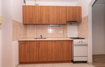 A lakás bútorozott: komplett konyhabútor sütővel, páraelszívóval, új hűtőszekrény, a szobában tágas modern szekrény polcokkal. A lépcsőház tiszta, rendezett állapotú.