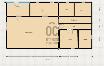 A ház kényelmes otthont biztosít 80 nm nagyságban ,míg a hozzá tartozó terület 3193 nm-en ad lehetőséget mozgásra a friss levegőn.