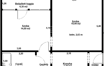 - 4,38 m² beépített loggia