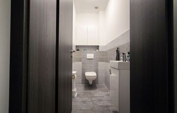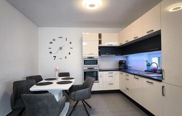 - A fürdőben épített zuhanyzó és fürdőkád valamint dupla mosdó is beépítésre került