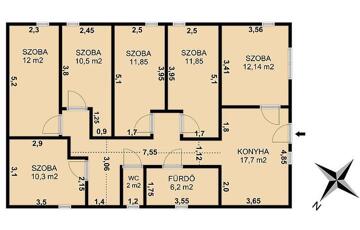 6 szoba, konyha, fürdőszoba káddal és zuhanyzóval és egy plusz mosdó lett kialakítva. 2 szoba gipszkartonnal van leválasztva, így könnyen visszanyitható a tágasabb konyha és a nappali.