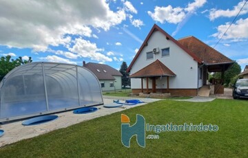 Elhelyezkedése: Belterület Tájolása: Dél-nyugai tájolású Állapota: Kiváló Komfort besorolása: összkomfortos Építési éve: 2006 Alapterülete: 297 m2 Telekterülete: 719 m2 Szobák száma: 8 + 4 szoba Felújított: Felújított Felújítás éve: 2022 Felújítás során elvégzett munkák: Festés, Egyéb Közművek: Gáz, Víz, Villany, Csatorna Gázellátás: Vezetékes Vízellátás: Vezetékes víz Melegvíz-ellátás: Gázkazán Áramellátás: 230V/380 V Fűtés módja: Gáz Fűtés típusa: Cirkó Homlokzat állapot: Jó Építési mód: Tégla Tető formája: Magas Tető anyaga: Cserép Parkolási lehetőség: Garázsban Kilátás: Utcafronti kilátás, Udvari kilátás Jellemzői: Két bejárat, Redőny, Fűtött garázs, Légkondicionáló, Udvari terasz, Beépített konyhabútor, Kert, Kerítés, Medence, Térkő Energetikai besorolás: B Egyéb jellemzők: Erkély, Terasz Tv, Internet: Internet Közelben: Orvosi rendelő, Bolt, Gyógyszertár, Vendéglátó egység, Reptér, Autópálya Terhelések: Tehermentes ingatlan Eladásra vonatkozó információk: Az ár tartalmazza a teljes berendezést, Azonnal beköltözhető