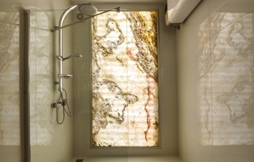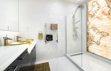 • Projektor és megvilágított slate light a fürdőben, elegáns részletek mindenhol