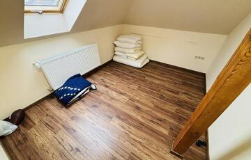 Az emeleten egy impozáns nappali várja az új tulajdonost – szükség esetén konyha kialakítására is adott a lehetőség –, emellett négy hálószoba, egy újabb fürdő, WC és egy praktikus gardróbhelyiség biztosítja a komfortot.