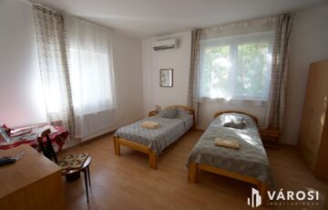 Az épület három szintje – félszuterén, magasföldszint és emelet – jól átgondolt elrendezésű. A magasföldszinten és az emeleten összesen nyolc klimatizált szoba található, mindegyik saját fürdőszobával és egyedi fogyasztásmérővel, ami különösen előnyös több lakrész vagy szálláshely üzemeltetése esetén. A földszinten négy szoba, négy fürdő és egy konyha, míg az emeleten további négy szoba és négy fürdő kapott helyet. Az ingatlan korábban szálláshelyként működött, és akár 24–30 fő befogadására is alkalmas.
