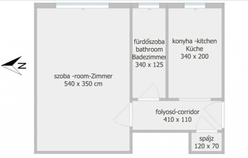 Az ingatlanban egy nagy méretű szoba, tágas konyha, fürdőszoba, folyosó és spájz található, a pontos alaprajz és a valós fotók alapján. No photoshop.