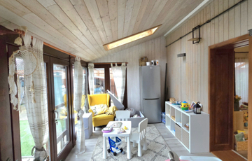 Tágas nappali mellett a világos, fűtött télikert növeli a teret.