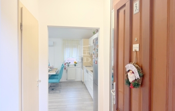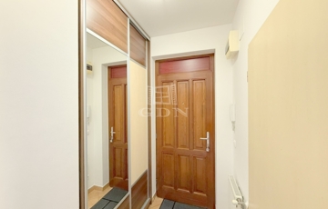 A zárt udvarról megközelíthető tégla lakás tágas terek által ad helyet egy beépített szekrénnyel ellátott előtérnek, egy nagyméretű nappali - konyha - étkező együttesnek, két külön nyíló hálónak - melyből az egyik kapcsolatos a 8 m2 - es erkéllyel, egy épített zuhanyzóval felszerelt fürdőnek, valamint egy külön helyiségben található toalettnek.