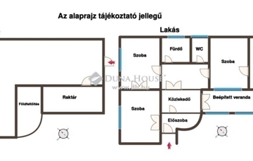 Fürdőszoba, külön WC, konyha, fedett zárt veranda, kamra, közlekedő