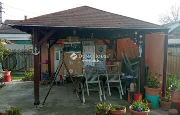 - az udvar egy része betonozott, van egy nagy kerti kiülő, előtte egy kerti sütő