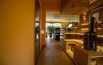 - Wellness részleg (100 m²): kombinált szauna (finn/infra), kőgőzkabin, pihenőtér