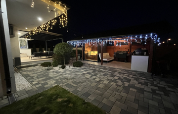 Helyet kapott egy igazi relaxációs sziget, a pihenésre és feltöltődésre vágyók számára: benne egy FILAGÓRIA, amelyben SZAUNA és KÜLTÉRI KONYHA beépített grillel teszi még kényelmesebbé a mindennapokat és a baráti összejöveteleket.
