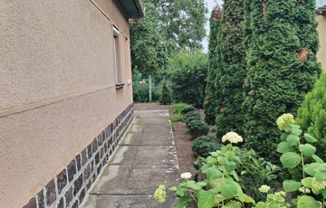 A ház 1970-ben épült, falazata vegyesen tégla és vályog, hátsó része szilikát. A fűtést hőtárolós villanykályha, gázkonvektor és elektromos fűtőpanel biztosítja, az egyik szobába légkondícionáló is beszerelésre került. Az épülethez nagyméretű hátsó tároló helyiség, pince és szerszámtároló tartozik, ipari áram is rendelkezésre áll. A kert gyümölcsfákkal van beültetve, a locsolást ásott kút és hálózati kerti csap biztosítja.