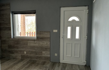 Belső festés, járólap és laminált parketta lerakása is akkor történt. A bejárati ajtó és az ablakok szintén cseréve lettek.