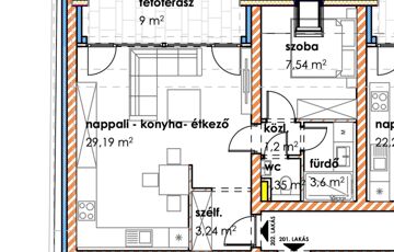 A 1 db amerikai konyhás nappalival, 1db hálószobával, 1 db fürdőszobával, közlekedővel, loggiával rendelkezik.