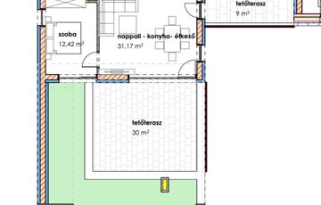 Makón, presztizs lokációval rendelkező - Makói fürdőtől 30 méterre - a Szent János téren - A Napfény Residenceben - , Eladó egy most induló, tégla építésű, MÁSODIK EMELETI , 98 nm-es élettérrel rendelkező, amerikai konyha nappali plusz kettő szobás, dupla fürdős, loggiás, 30 nm-es tetőteraszos (melyhez még 15 nm zöld terület is tartozik) tégla lakás (2.em 7.lakás).