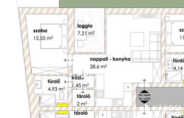 A 1 db amerikai konyhás nappalival, 1db hálószobával, 1 db fürdőszobával, közlekedővel, loggiával rendelkezik.