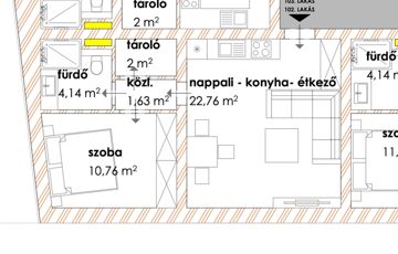 A 1 db amerikai konyhás nappalival, 1db hálószobával, 1 db fürdőszobával, közlekedővel, rendelkezik.