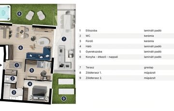 Új építésű prémium lakások Siófok Ezüstpartján 100 méterre a Balatontól! Siófok egyik legkedveltebb és legértékállóbb részén, az Ezüstparton, a Balaton szabadstrandjától mindössze 100 méterre valósul meg ez a 70 lakásos, új építésű, modern lakópark, amely a vízparti életstílust ötvözi a korszerű műszaki megoldásokkal és az exkluzív környezettel. A projekt ideális választás mindazok számára, akik állandó otthont, nyaralót, vagy értékálló, jól hasznosítható befektetést keresnek a Balaton déli partján. A lakópark koncepciója: A lakópark több, letisztult megjelenésű, liftes társasházból áll, átgondolt építészeti kialakítással és gondosan megtervezett közösségi terekkel. A hangsúly a kényelmen, a privát szférán és a minőségi kivitelezésen van, így a lakások egész évben élhetőek. A kínálatban 48–68 m² alapterületű, nappali + 1 vagy 2 hálószobás lakások érhetők el: - Földszinti lakások: fedett terasszal és saját, kertkapcsolatos udvarrésszel, élősövénnyel leválasztva - Emeleti lakások: nagy méretű, fedett teraszokkal - Legfelső szinti penthouse lakások: tágas tetőteraszokkal, napvitorlával árnyékolva vagy igény szerint végleges fedéssel, valamint jakuzzi kialakítási lehetőséggel A lakások kompakt, jól bútorozható alaprajzzal, külön hálószobával, világos nappali-konyha-étkező térrel készülnek, így kiválóan alkalmasak saját használatra és kiadásra is. A kivitelezés során kiemelt figyelmet kap a tartósság, az energiahatékonyság és a komfort: - monolit vasbeton alapozás és födémek - korszerű téglafalazat, kiváló hang- és hőszigeteléssel - lakások között fokozott hangszigetelés - hőszivattyús fűtés-hűtés rendszer - teljes felületű padlófűtés - modern okosotthon előkészítés - motoros zsalúzia a nyílászáróknál - prémium burkolatok: laminált padló, kerámia és gres burkolatok - edzett, ragasztott üveg terasz- és erkélykorlátok - lift minden épületben Közösségi terek és szolgáltatások - a lakópark zárt, biztonságos és parkosított környezetet biztosít: - fűthető közös medencék - gondozott zöldterületek - játszótér és pihenőrészek - SUP- és sporteszköz tárolók - elektromos autó töltési lehetőség - kamerarendszer és beléptetés - állandó karbantartó és üzemeltető személyzet A közös terek kialakításánál fontos szempont volt, hogy azok illeszkedjenek a balatoni természeti környezethez, és egész évben használhatóak legyenek. Parkolás: - zárt udvaron belüli gépkocsibeállók - elektromos kapus behajtás - gépkocsibeálló ára: 3.500.000 Ft Elhelyezkedés – Balaton, város, nyugalom: - A lakópark elhelyezkedése kivételes - Balaton szabadstrand: 100 m - sétány, éttermek, kávézók: pár perc sétára - vitorláskikötő, bevásárlási lehetőségek a közelben - Budapest gyorsan elérhető az M7-es autópályán Az Ezüstpart csendes, rendezett környezete különösen kedvelt a minőségi balatoni életformát keresők körében. Kinek ideális választás? - akik a Balaton közvetlen közelében szeretnének prémium minőségű otthont - befektetők számára, akik értéknövekedésben és kiadhatóságban gondolkodnak - családoknak és pároknak, akik egész évben élhető balatoni lakást keresnek - második otthont vásárlóknak, akik a nyugalmat és a modern kényelmet egyszerre értékelik Figyelem! Jelen hirdetésben található alaprajz a "C" épület 301-es lakásához kapcsolódik, a képek látványtervek! További információért, aktuális árlistáért, szabad lakásokért és alaprajzokért keressen bizalommal! Most még válogathat a lakások között, ne maradjon le a választás lehetőségétől! (További képekért és információkért kérem hívjon!)