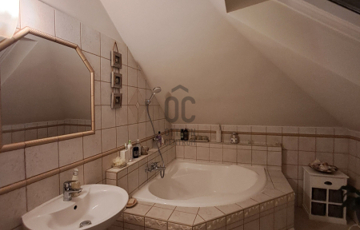 A ház földszintjén található egy külön bejáratú, 19 m²-es nagyságú fodrászüzlet is, amelyből összeköltözők esetén akár külön lakrész kialakítására is van lehetőség.