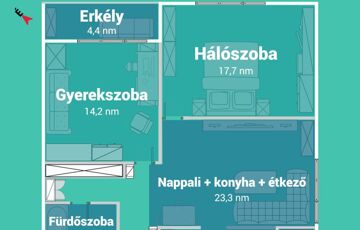 - **Lakótér:** 70 m² + 4 nm loggia