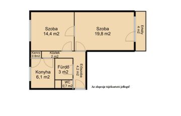 Az ingatlan elosztása: 2 szoba külön nyíló bejárattal, konyha, fürdőszoba, külön WC, illetve egy erkély.