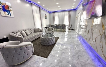 Az ár tartalmazza a teljes belső berendezést, a kültéri bútorokat, a játszóteret és a kemencét is.