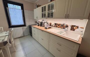 Az ingatlan jó-felújított állapotú, a villany-vezetékeket részben áthúzták alumíniumról rézre, új biztosító dobozt szereltek fel. Az ablakok műanyag thermo üvegesek (konyhában és a kisebb szobában fa típusú thermo üvegesek, hálóban redőnyös). A szobák laminált parkettások, a többi helyiség járólapos, a a wc és a fürdőszoba új burkolatot, kádat és szanitereket kapott. A konyhabútort, a víz-vezetékeket, a belső ajtókat és a radiátorokat kicserélték. A bejárati ajtó több ponton záródó, biztonsági. Tehermentes!