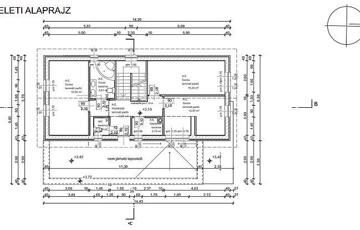Elosztása: földszinten található garázs, amerikai konyhás nappali, hálószoba, fürdőszoba, míg az emeleten 3 db hálószoba, fürdő WC külön és egy gépészeti helység.