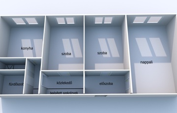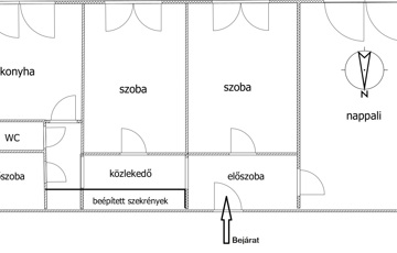 - Helyiségei: előszoba, közlekedő, konyha, étkező, nappali + 2 szoba, fürdőszoba, WC külön.